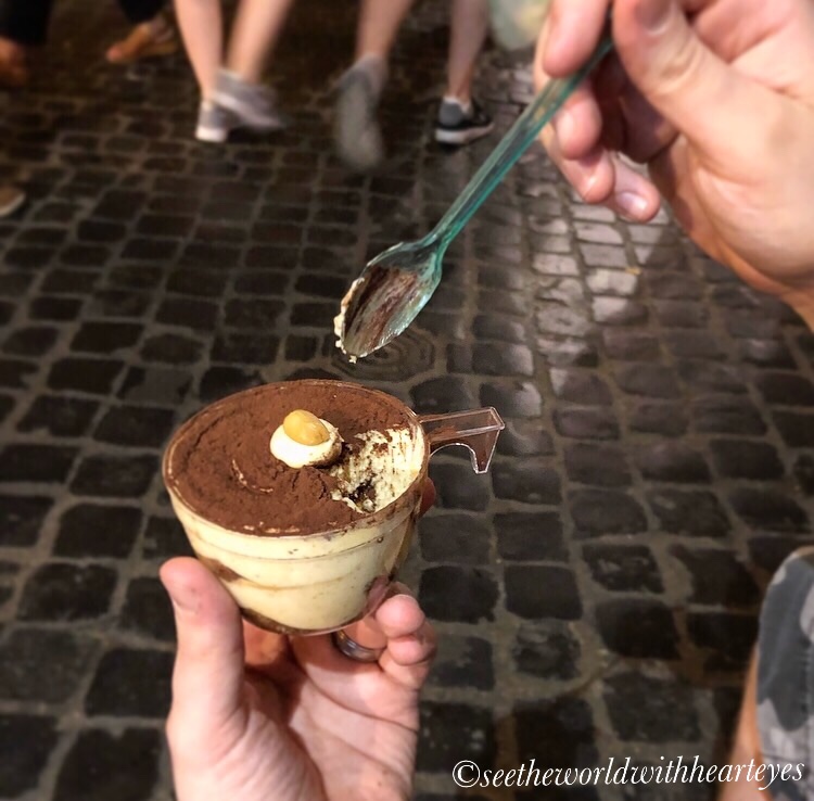 So, I love tiramisu, seriously, ask anyone. In fact I love it so much that my husband and I even had it as our wedding cake (and it was amazing!) so I admit that I was sceptical when we came across this little hole in the wall tiramisu shop called Two Sizes in the historic centre of Rome selling different flavours of tiramisu. Now usually I’m a purist, if it’s not broke don’t fix it, but when in Rome and all that… so we decided to give it a go. We chose a pistachio (his favourite flavour of everything) tiramisu and a peanut butter (and mine) tiramisu and dug our plastic spoons in with bated breath…. and oh my god so, so incredibly good!! Seriously, this has to be up there with the greatest things I have ever eaten – do yourself a favour and if you find yourself in Rome do not hesitate to check this place out!